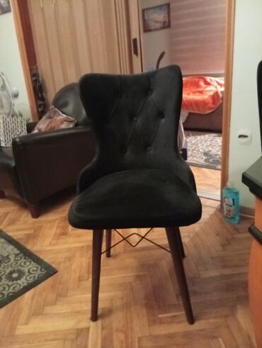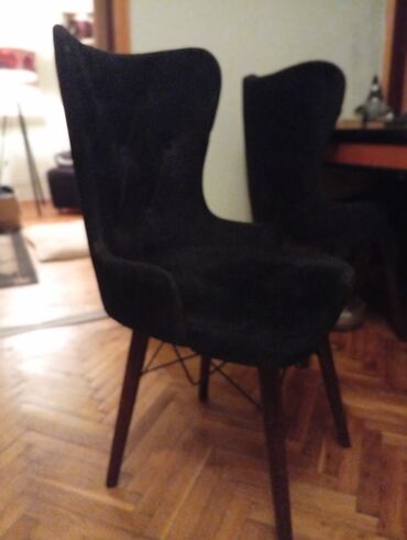 Tapacirane stolice – crna baršunasta tkanina, drvene noge - Moderan