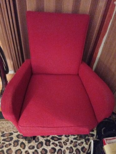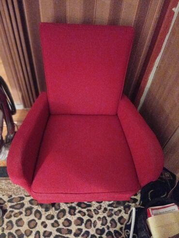 Crvena tapacirana fotelja...žičani jezgro .prana i jednom presvučena, ja je koristim u kući