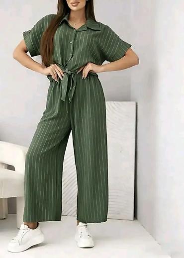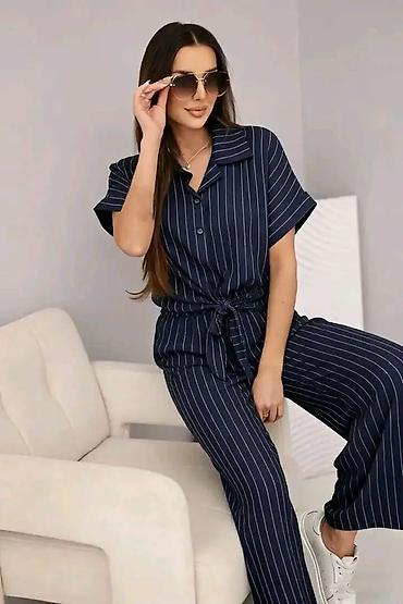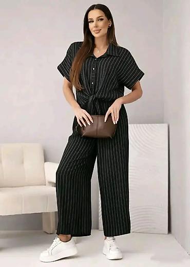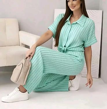 - Dvodijelni set: kratkorukavna košulja sa kragnom i kopčanjem sprijeda + široke pantalone ravnog, opuštenog kroja.