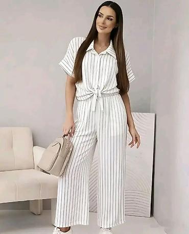 Damski komplet – košulja i pantalone na pruge