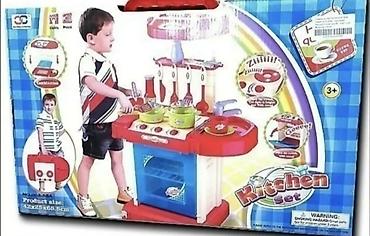 - Kompletna igračka kuhinja sa šporetom sa dva ringle, rernom, policama i sudoperom sa slavinom.