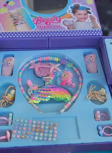 - Set za pravljenje narukvica i ogrlica: raznobojne perle, privesci, elastične gumice