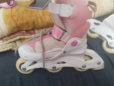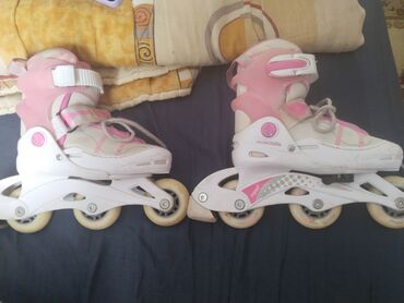 Dečije roleri – roze/beli, podesivi - Tip: inline roleri (4 točkića u