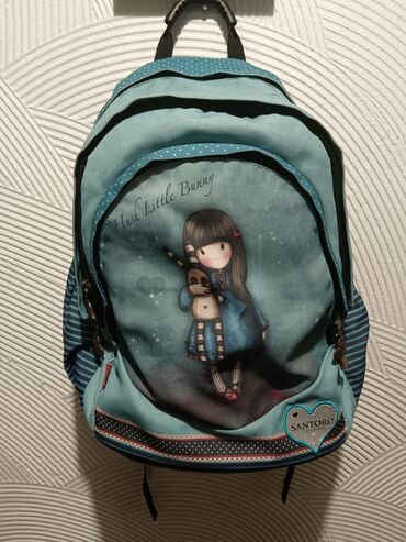 - Dizajn: prepoznatljiv Santoro motiv devojčice sa plišanim zekanom na prednjem džepu; kombinacija tirkizne, teget i prugastih detalja sa sitnim tufnama i dekorativnim srcima.
