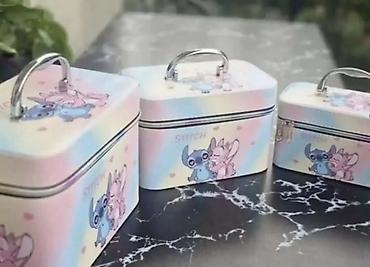 - Boje/motivi u ponudi prema fotografijama (roze, ljubičasto‑plave nijanse, Stitch varijante).
