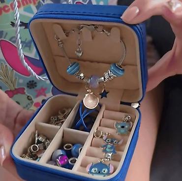 - Komplet sadrži oko 36 delova za pravljenje nakita inspirisanog likom Stitch: različite perle (staklene/akrilne sa plavim tonovima i efektima), metalne dystancere i priveske u obliku zvezde, školjke, srca, duge, lista, krune, repa sirene i više motiva Stitch.