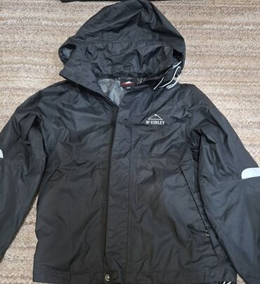 - Crna McKINLEY kišna/softshell jakna: kapuljača sa zatezanjem, vodootporni izgled materijala, mrežasta unutrašnjost za prozračnost, prednji rajsferšlus sa zaštitom, bočni džepovi na rajsferšlus, reflektujući detalji na rukavima, brendirani logo na grudima.