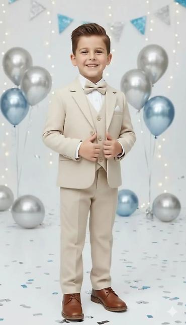 Elegantno odelo za dečake u klasičnoj bež nijansi, idealno za krštenja, svadbe, rođendane i sve svečane prilike. Komplet sadrži: