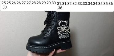 - Model 4: crne patike-čizme sa belim međđonom, pertlanje, stabilizacija u zoni pete, reljefni đon za teren, bočni logotip. Veličine: 31, 31, 32, 33, 35, 35, 36, 33.