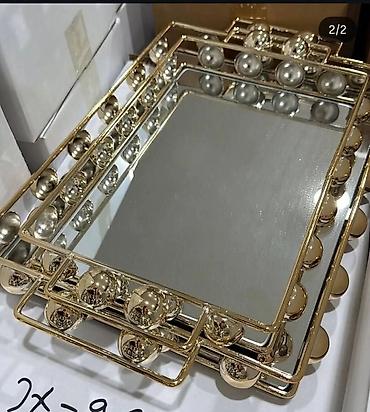 Dekorativni set pravougaonih poslužavnika sa ogledalom