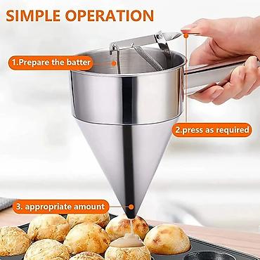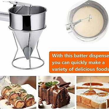 - Pogodan za palačinke, mafine i kapkejk kalupe, eklere, krofne, takojaki kuglice, sosove, čokoladne i karamel prelive, med, smese za vafle i sl.