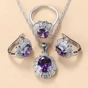 - Usklađenost: elementi su stilski usklađeni za kompletan, sofisticiran izgled; centralni kamen na svakom komadu usklađen po boji.