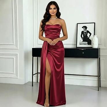Elegantna duga svečana haljina od satena - Kroj: uska silueta koja