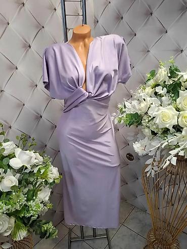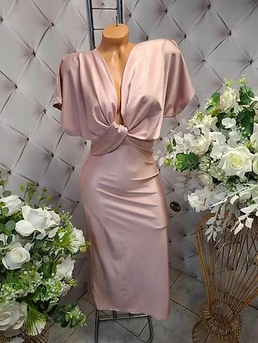 - Kroj: uska midi silueta koja prati liniju tela, sa blagim naborima oko kukova
