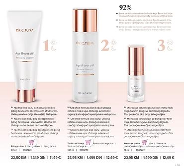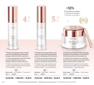- Na pojedinim proizvodima naznačeni su rezultati ispitivanja nezavisnih laboratorija (+52% povećanje nivoa kolagena kod linije Age Reversist).