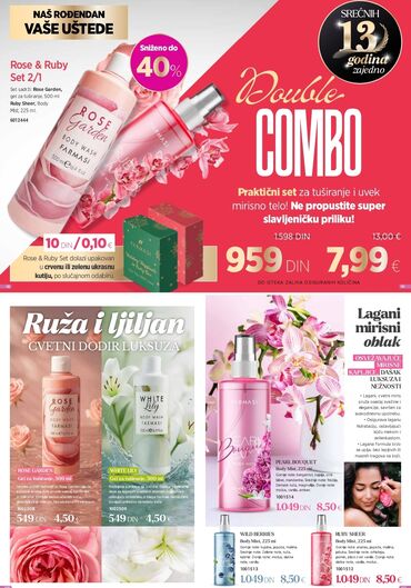 - Gelovi za tuširanje: Rose Garden 500 ml (1002509) i White Lily 500 ml (1002509) – nežne mirisne note ruže i belog ljiljana.