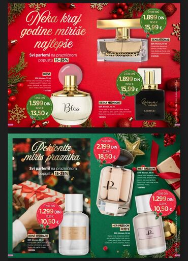 - Svi parfemi na prazničnom/novogodišnjem popustu 15–25%.