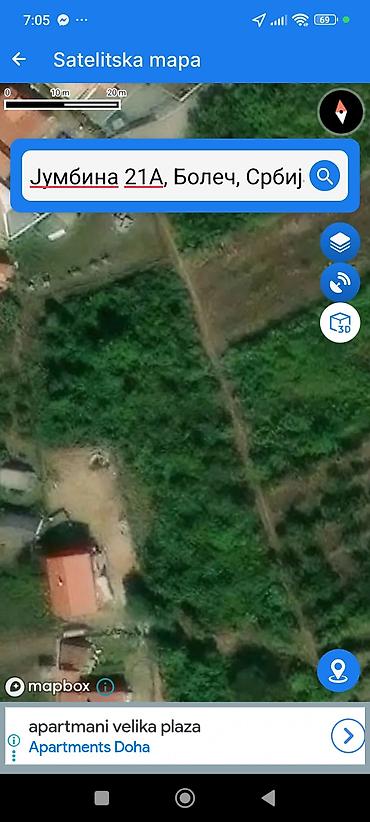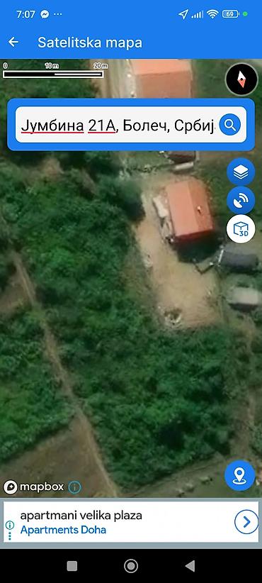 - Lokacija: u zoni Виноградска, Boleč (prikazano na satelitskoj mapi).