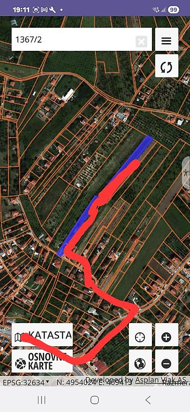 - Katastarski podaci: parcela broj 1367/2 (označena na prikazima katastarske karte).