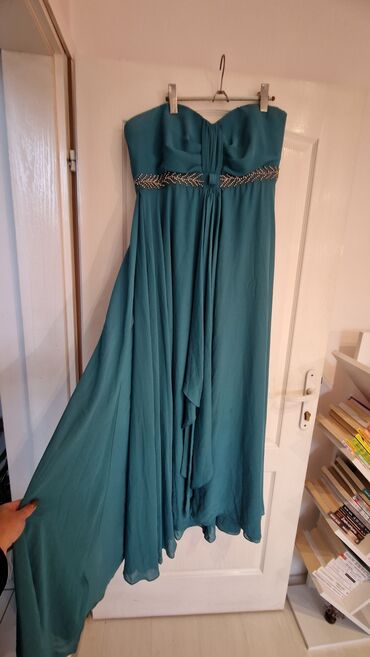 Elegantna haljina bez rukava, midi dužine, u taupe/sivoj boji. Model je ravne siluete sa blagim faldama na suknji koje daju lepo padajuću liniju. Na struku je ukrasni dijagonalni umetak od sjajne t...