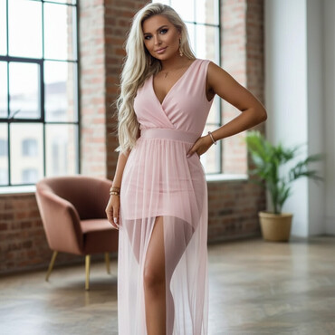 Elegantna satenska haljina u boji šampanjca. - Kroj: mini dužina, bez rukava, preklop na dekolteu (V-izrez) sa širokim pojasom koji naglašava struk - Detalji: asimetrično drapiranje preko prednjeg...