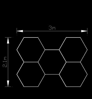 - Dimenzije seta na fotografiji: približno 3,0 m x 2,1 m (raspored 6 heksagona kao na šemi).