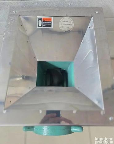 - Liveno telo mašine sa velikim ulaznim košem (levak od nerđajućeg čelika) za brzu obradu većih količina.