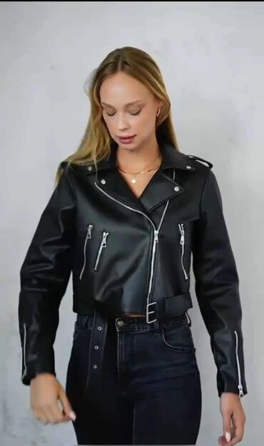 Ženska moto jakna – Yerteks, veličina L NOVO(uslikana M,ali na stanju je jos L) - Materijal: eko koža (sjajna, glatka tekstura) sa podstavom. - Boja: crna. - Kroj: kratka biker silueta sa asimetrič...