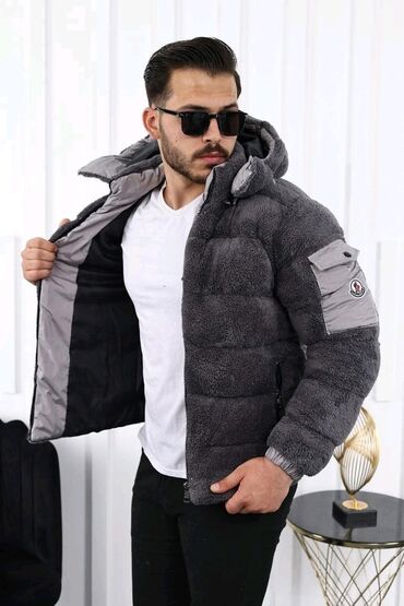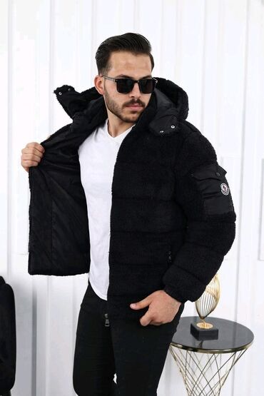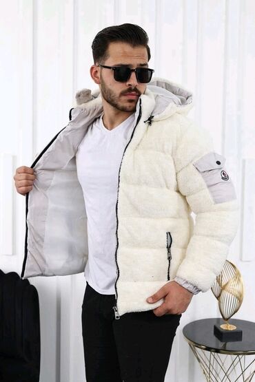 The North Face muška reverzibilna jakna sa kapuljačom. - Dvostrano nošenje: jedna strana glatka, tamno maslinasta sa TNF logotipom na grudima i rukavu; druga strana mekana „teddy”/flis u beloj boj...
