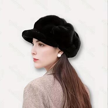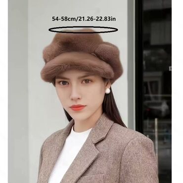 Ženska zimska kapa sa šiltom – elegantna beretka od mekanog veštačkog krzna. - Dizajn: kombinacija beretke i šilterice sa blago talasastim, voluminoznim obodom koji daje sofisticiran, retro izgled...