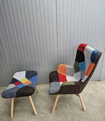 KLUB FOTELJA + TABURE - Patchwork Štof - stolice Cena 38.000 MODERNE