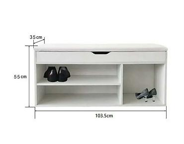 - Sedište: gornji jastuk tapaciran (krem/bela nijansa) za udobno sedenje pri obuvanju