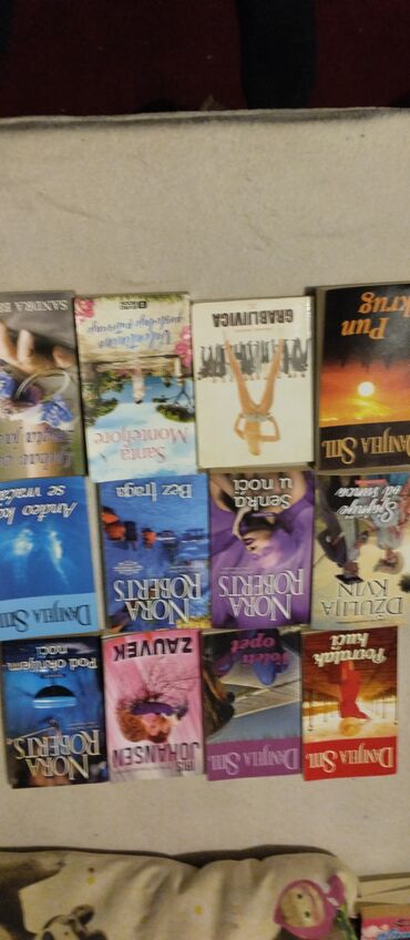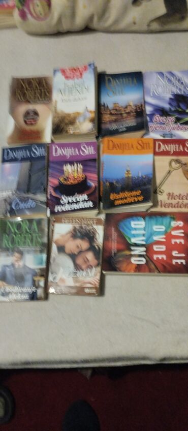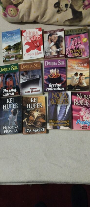 - Nora Roberts – više naslova: “Crveni ljiljan”, “Sve je ovde divno”, “Mladoženje Mekgregorovih”, “Predaj se”, “Bez traga”, “Igra svetlosti i senke” (i drugi naslovi vidljivi na fotografijama)