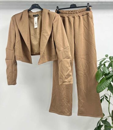 Damski komplet – sako i pantalone u bež/ekru nijansi. Detalji: - Sako bez kragne, zakopčavanje na 5 dekorativnih metalnih dugmadi - Dugi rukavi sa sitnim dugmadima na manžetnama - Kroj blago struk...3 000 RSD