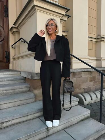 Ženski pleteni komplet – dukserica sa rajsferšlusom i široke pantalone - Dvončlani set od rebrastog pletiva: kratka dukserica sa kapuljačom i rajsferšlusom + pantalone ravnog, širokog kroja. - Vis...3 500 RSD