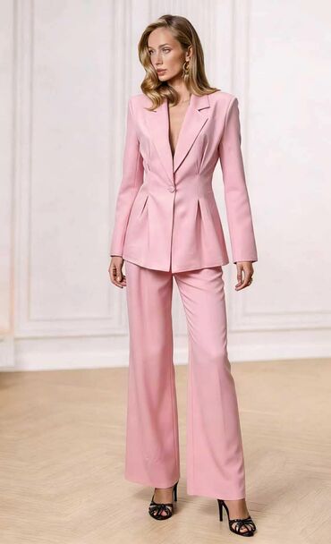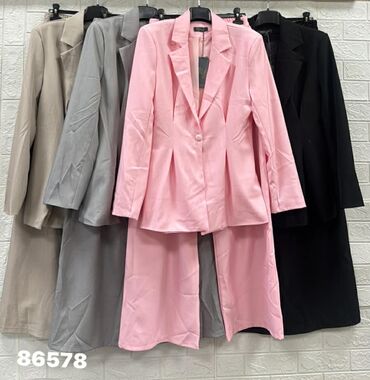 Ovaj ženski dvodelni komplet uključuje široke pantalone sa visokim strukom i gornji deo dugih rukava. Pantalone su sa širokim nogavicama i vezicama u struku, pružajući udobnost i slobodu pokreta. G...