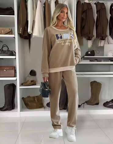 Ženski dvodelni komplet koji se sastoji od bluze sa širokim rukavima i širokih pantalona. Bluza je labavog kroja sa okruglim izrezom i metalik zlatnim ukrasima na kragni i rubovima rukava. Pantalon...