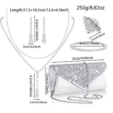 Komplet elegantnih večernjih aksesoara – torbica + nakit
