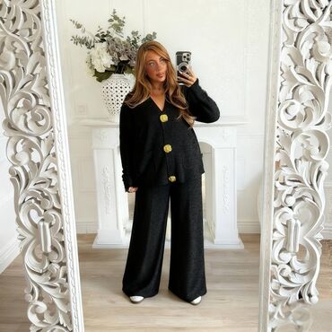 Zara komplet od pamuka na teget-bele štrafte, S veličine, se sastoji od pantalona sa širokim nogavicama i gumom u struku i majice asimetrične na jedno rame, sa padajućim rukavom. Veoma neobičan i n...