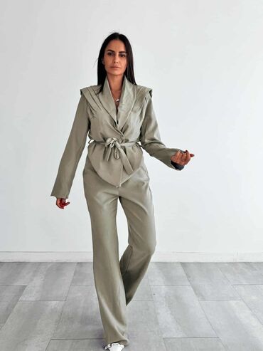 Ženski komplet trikotaza - Materijal: meka, elastična pletenina sa rebrastim, širokim pojasom na struku i manžetnama za udobno pristajanje. - Gornji deo: dugački rukavi, blago opušten kroj sa skupl...3 500 RSD