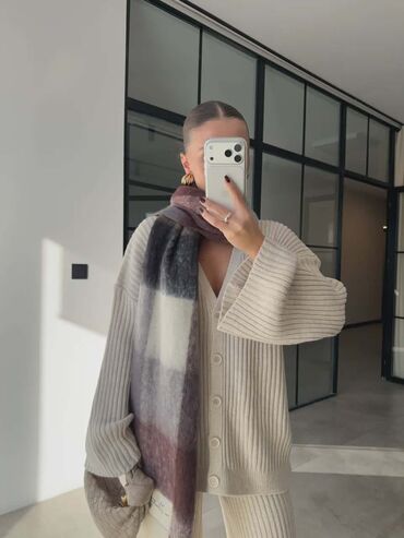 Ženska modna kombinacija – džemper i pantalone - Gornji deo: mekani pleteni džemper u sivoj boji, okrugli izrez, dugi rukavi sa diskretnim teksturnim detaljima duž rukava. Ravan kroj koji lepo pad...