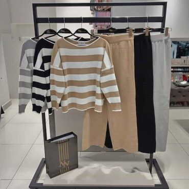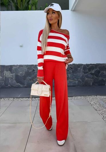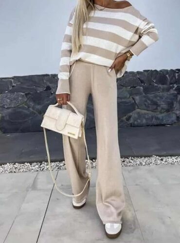 Ženski komplet trikotaza - Materijal: meka, elastična pletenina sa rebrastim, širokim pojasom na struku i manžetnama za udobno pristajanje. - Gornji deo: dugački rukavi, blago opušten kroj sa skupl...3 600 RSD