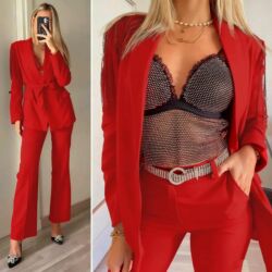 Naslov: Zara model kompleta — Dužina nogavice 115 cm — Cena: 3500 din Opis: Elegantni ženski komplet inspirisan Zara modelom. Sastoji se od kardigana/sako kroja sa dubokim V-izrezom i naglašenim s...