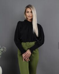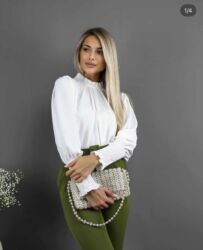 Naslov: Cena:1150 din Većličine:L-5XL Opis: - Elegantna ženska košulja na crno‑bele pruge - Model sa blagim V-izrezom i kratkom patnom sa dugmićima - Džep na grudima sa prugama pod uglom za modera...