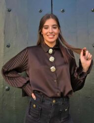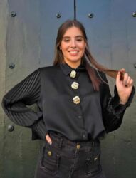 Ženske košulje – dva modela - Model 1: Crno‑siva košulja sa bogatim