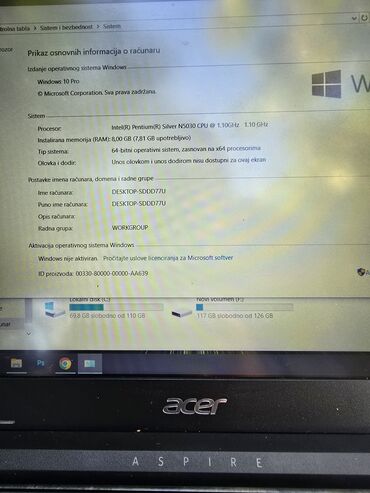 Laptop Acer sa punjačem,bateriju ima ali ne drži.Memorija 3GB.Up to1024MB NVIDIA Geforce 8400M GS Turbo cache350 EUR
