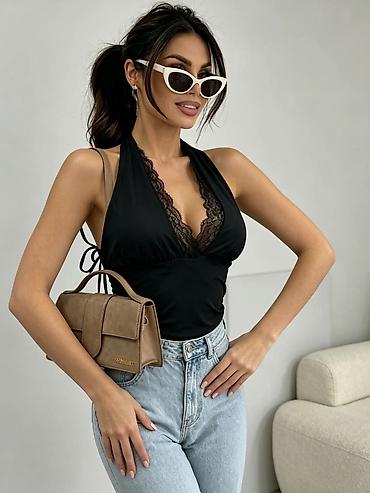Elegantna ženska bluza u crnoj boji. - Model sa 3/4 rukavima i