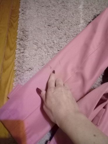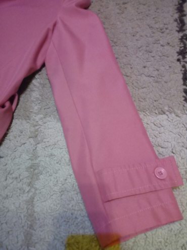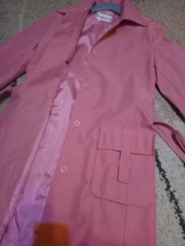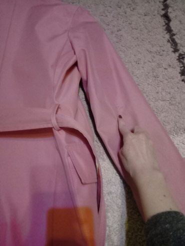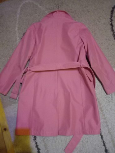 DugmadDžepoviMantil, savrsen; prelepa roze boja. vel.42. jedina mana na poledjini mantila na rukavima prstima pokazujem necim je umazano,nusam pokusavala da brisem. vrv da moze. materijal i boja savrseni,kao novo