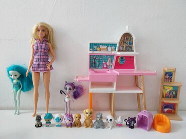 Sve sa slike zajedno, barbi, namestaj, dve encantimals i sitni ljubimci