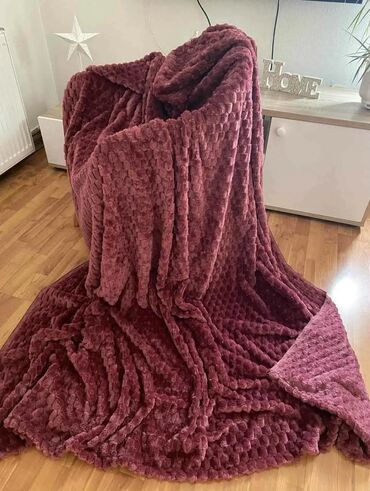 - Materijal: gusti, ultra mekani mikroplis (velvet/flanel) sa reljefnom teksturom (rebra ili „pufnice“) – prijatan na dodir, topao i lagan